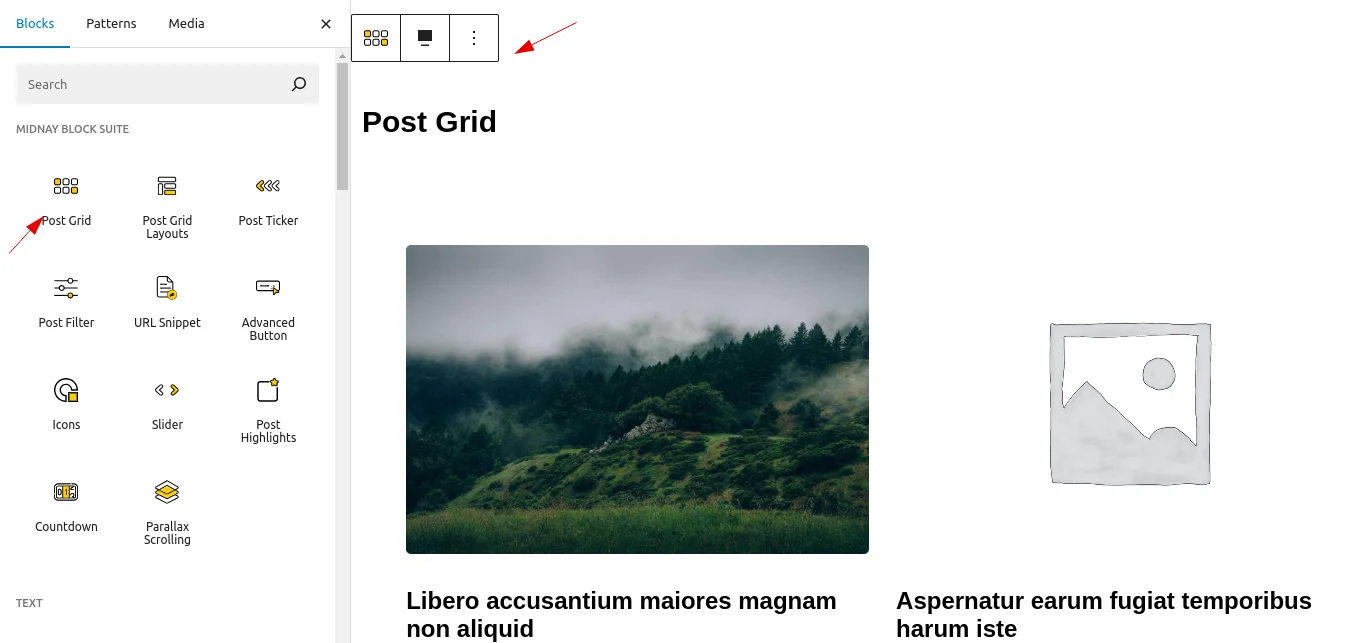 Add post grid block on edit page