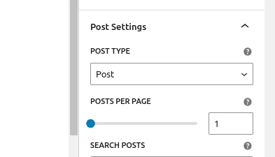 Users can change the post type using the selection dropdown, which displays “Posts” as the default option along with other available custom post types.