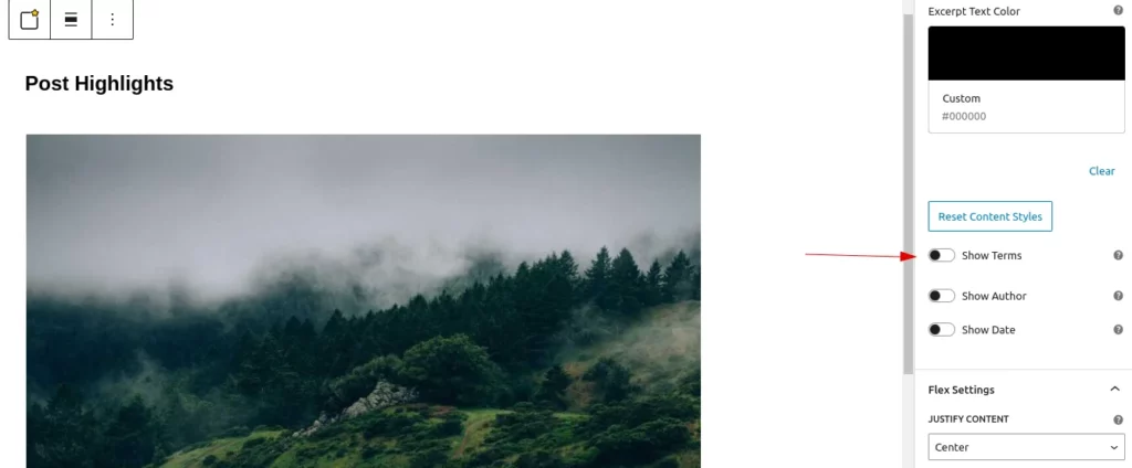 Enabling this toggle will display the term names of the posts, along with any customizations of the terms.